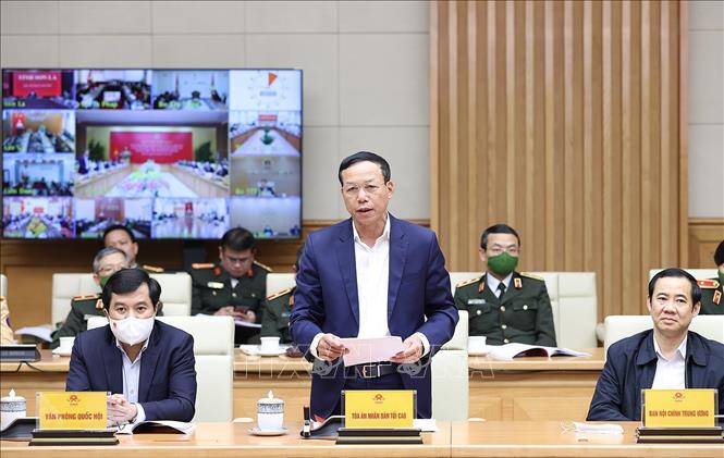Thủ tướng Phạm Minh Chính trao đổi với Phó Thủ tướng Vũ Đức Đam và Bộ trưởng Bộ Công an Tô Lâm.