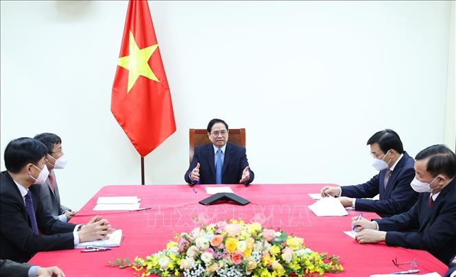 Sáng 13-1-2022, tại Trụ sở Chính phủ, Thủ tướng Phạm Minh Chính điện đàm với Thủ tướng Trung Quốc Lý Khắc Cường.