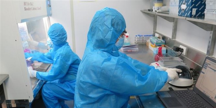 Y bác sĩ kiểm tra mẫu xét nghiệm COVID-19. Ảnh: TTXVN