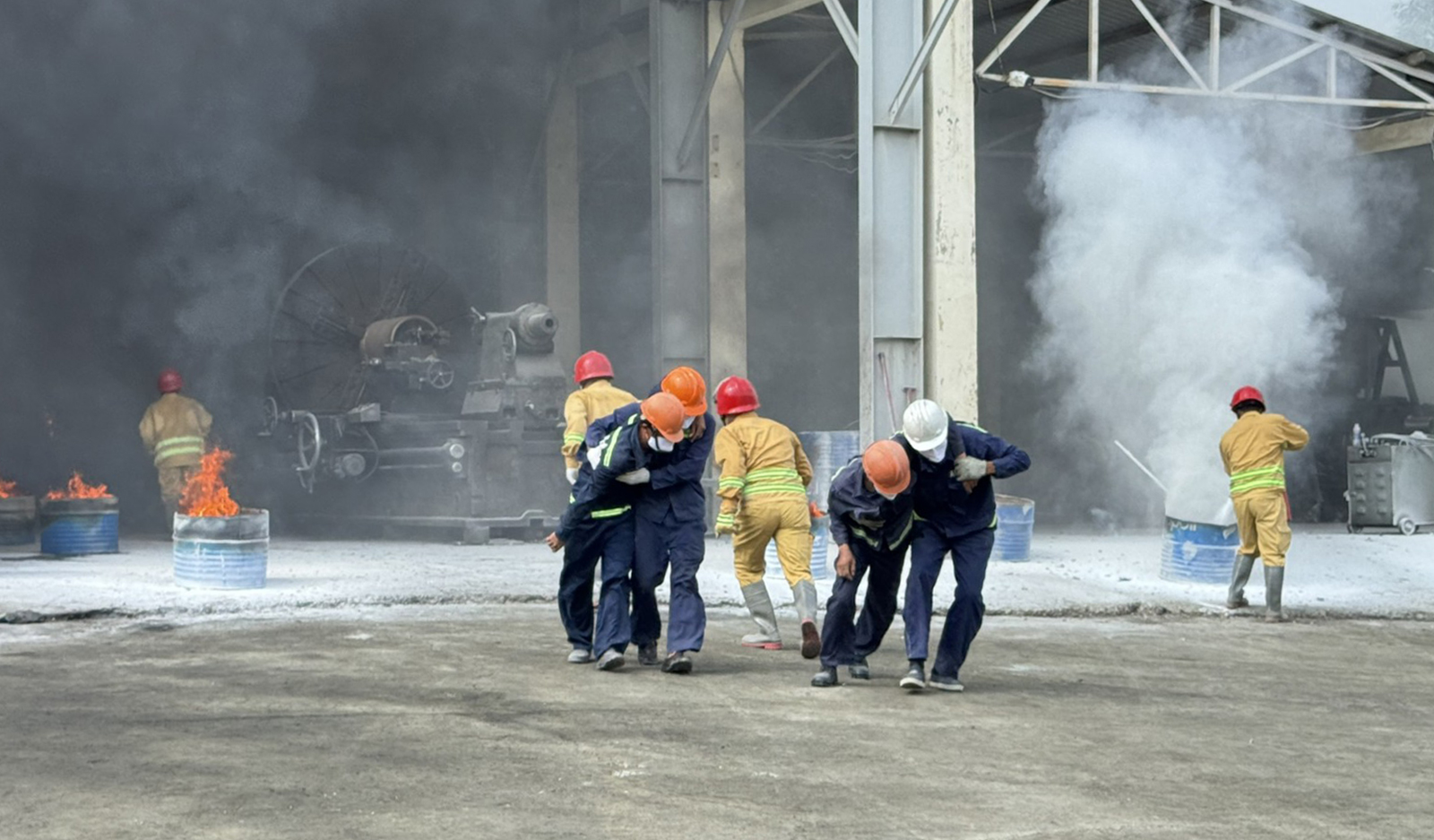 Tình huống giả định sự cố nghiêm trọng xảy ra tại khu vực xưởng sửa chữa.