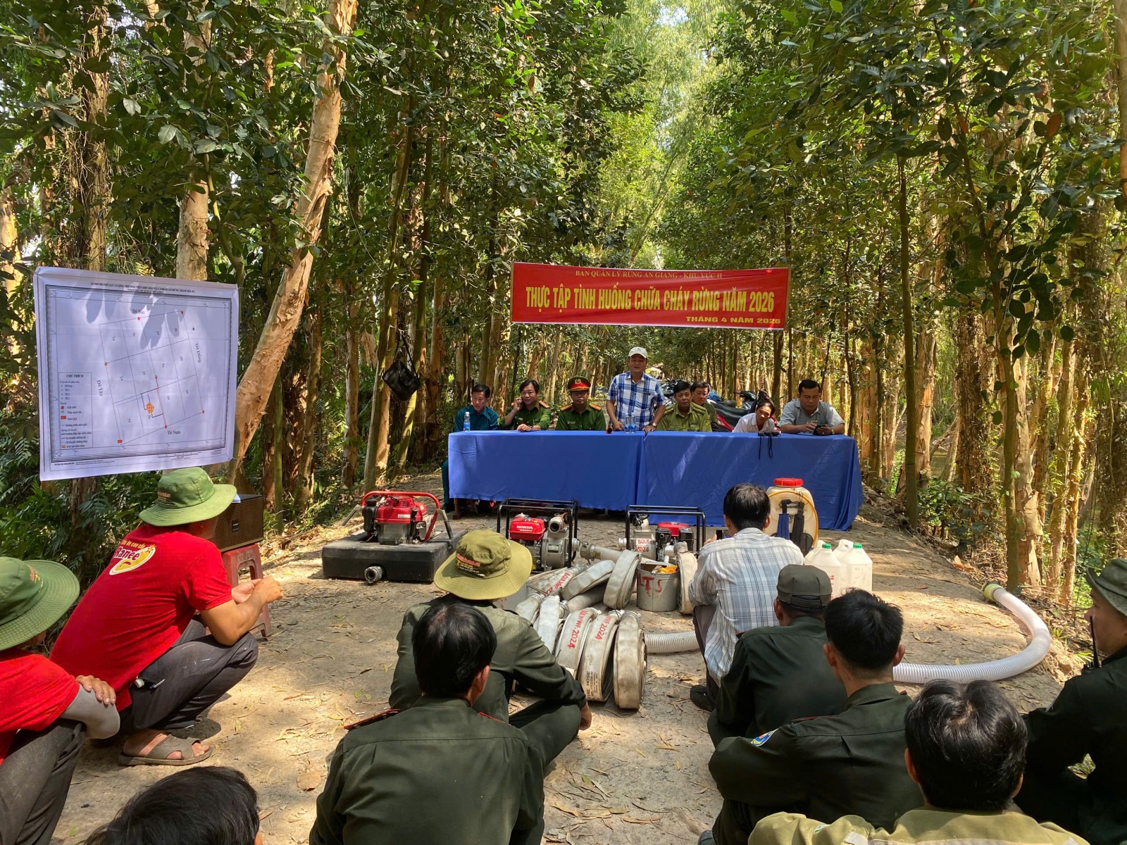 Tham gia buổi thực tập có viên chức, lực lượng chuyên trách bảo vệ rừng, hợp đồng phòng cháy, chữa cháy thuộc các Trạm Quản lý rừng số 1, 2 và 3 của Ban Quản lý rừng An Giang khu vực II; Đội Phòng cháy, chữa cháy rừng thuộc Điểm Du lịch sinh thái rừng tràm Trà Sư; đại diện UBND xã An Cư và Hạt Kiểm lâm khu vực I.