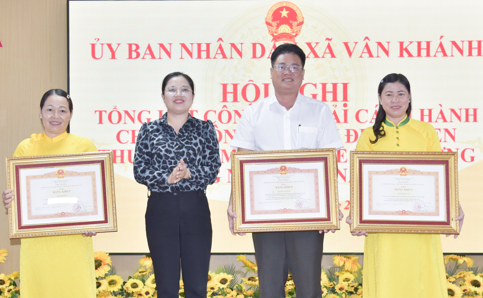 Dịp này, có 4 cá nhân có thành tích tốt trong công tác từ năm 2020 đến 2024 được Thủ tướng Chính phủ tặng bằng khen. Chủ tịch UBND xã Vân Khánh tặng danh hiệu “Tập thể lao động xuất sắc” cho 2 tập thể, tặng giấy khen cho 2 tập thể và 68 cá nhân đạt thành tích tốt năm 2025; đồng thời khen thưởng 1 tập thể và 1 cá nhân có thành tích trong công tác cải cách hành chính năm 2025.