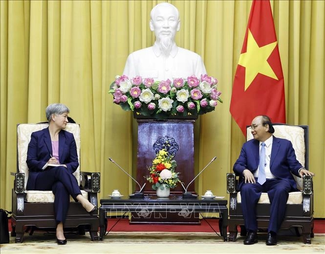Chủ tịch nước Nguyễn Xuân Phúc với Bộ trưởng Penny Wong. Ảnh: TTXVN