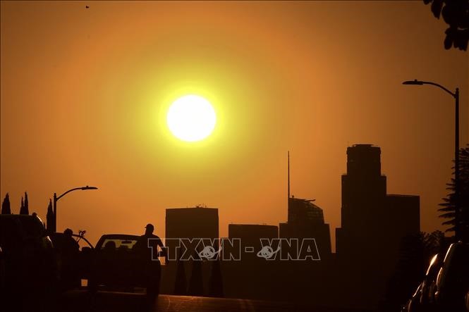Hoàng hôn khi nhiệt độ tăng cao kỷ lục ở Los Angeles, bang California (Mỹ). Ảnh tư liệu: AFP/TTXVN
