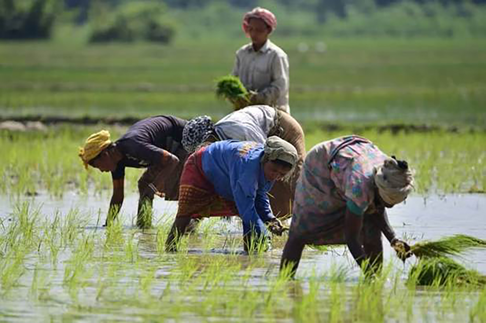 Nông dân trồng lúa trên cánh đồng ở Nagaon, bang Assam (Ấn Độ). (Ảnh: THX/TTXVN)