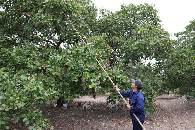 Ông Nguyễn Đình Thiết ngụ tại ấp 16, xã Hòa Hội (TP Hồ Chí Minh) thu hoạch điều. Ảnh: Báo Tin Tức