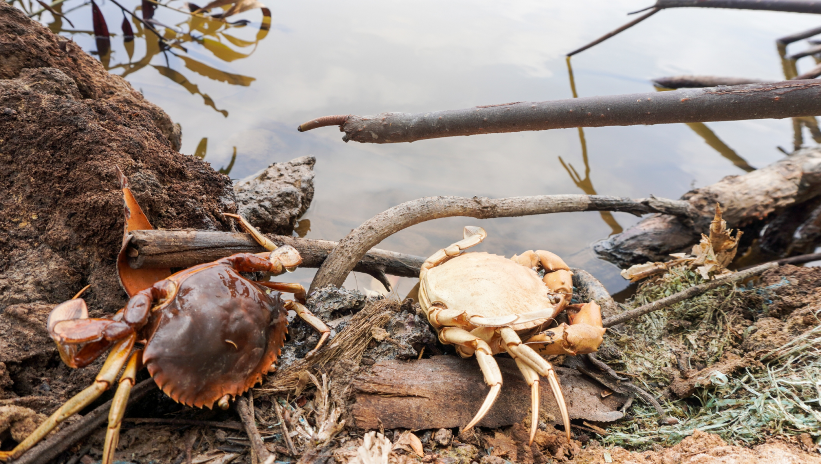 Cua nuôi không chịu nổi nắng nóng đã bò lên bờ và chết - Ảnh: Thanh Huyền/Tuổi Trẻ