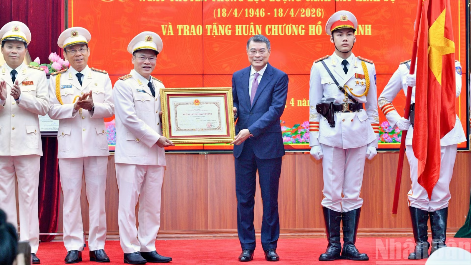 Thủ tướng Chính phủ Lê Minh Hưng trao Huân chương Hồ Chí Minh tặng lực lượng Cảnh sát hình sự. Ảnh: Thanh Giang/Nhân Dân