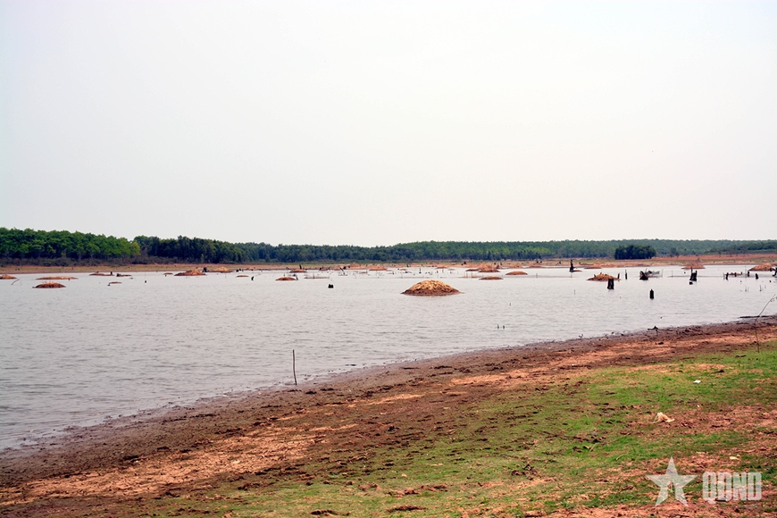 Mực nước hồ Lộc Thành tỉnh Đồng Nai (trước đây là tỉnh Bình Phước) xuống thấp kỷ lục tháng 3/2016. Ảnh: Báo Quân đội Nhân dân.