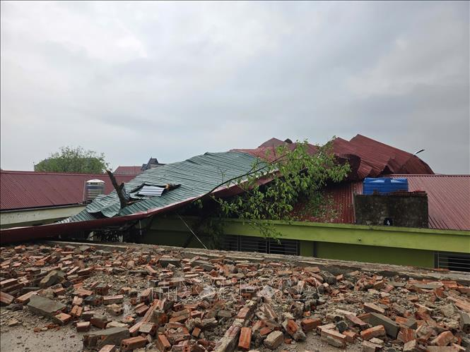 Tại phường Hàm Rồng (tỉnh Thanh Hóa), dông lốc kèm mưa đá xảy ra vào khoảng 23 giờ 30 phút ngày 17/4 đã gây thiệt hại rõ rệt. Ảnh TTXVN