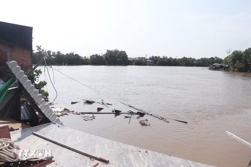 Hiện trường vụ sạt lở trên tuyến kênh xáng Bạc Liêu - Cà Mau. Ảnh: Tuấn Phi/TTXVN