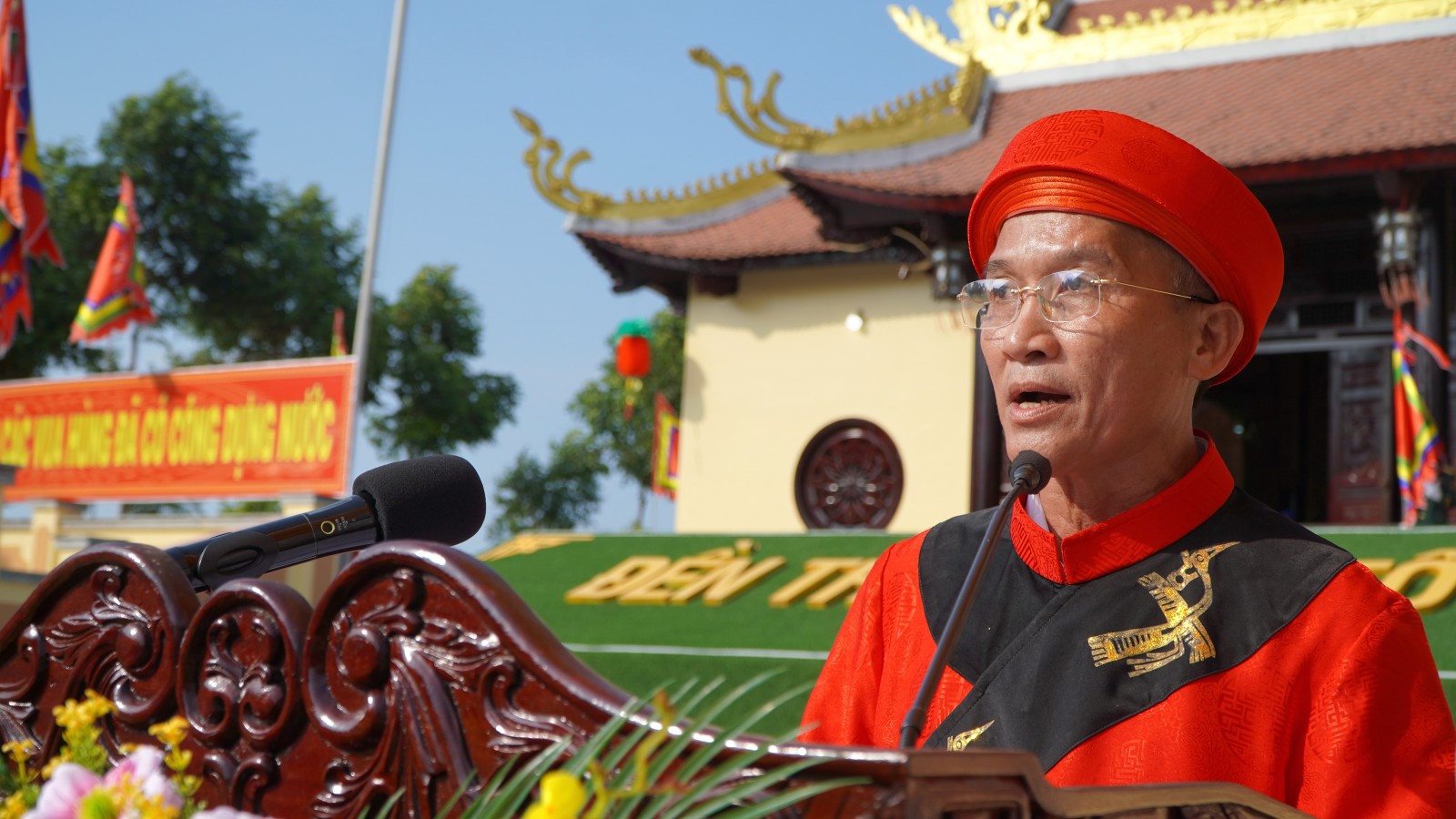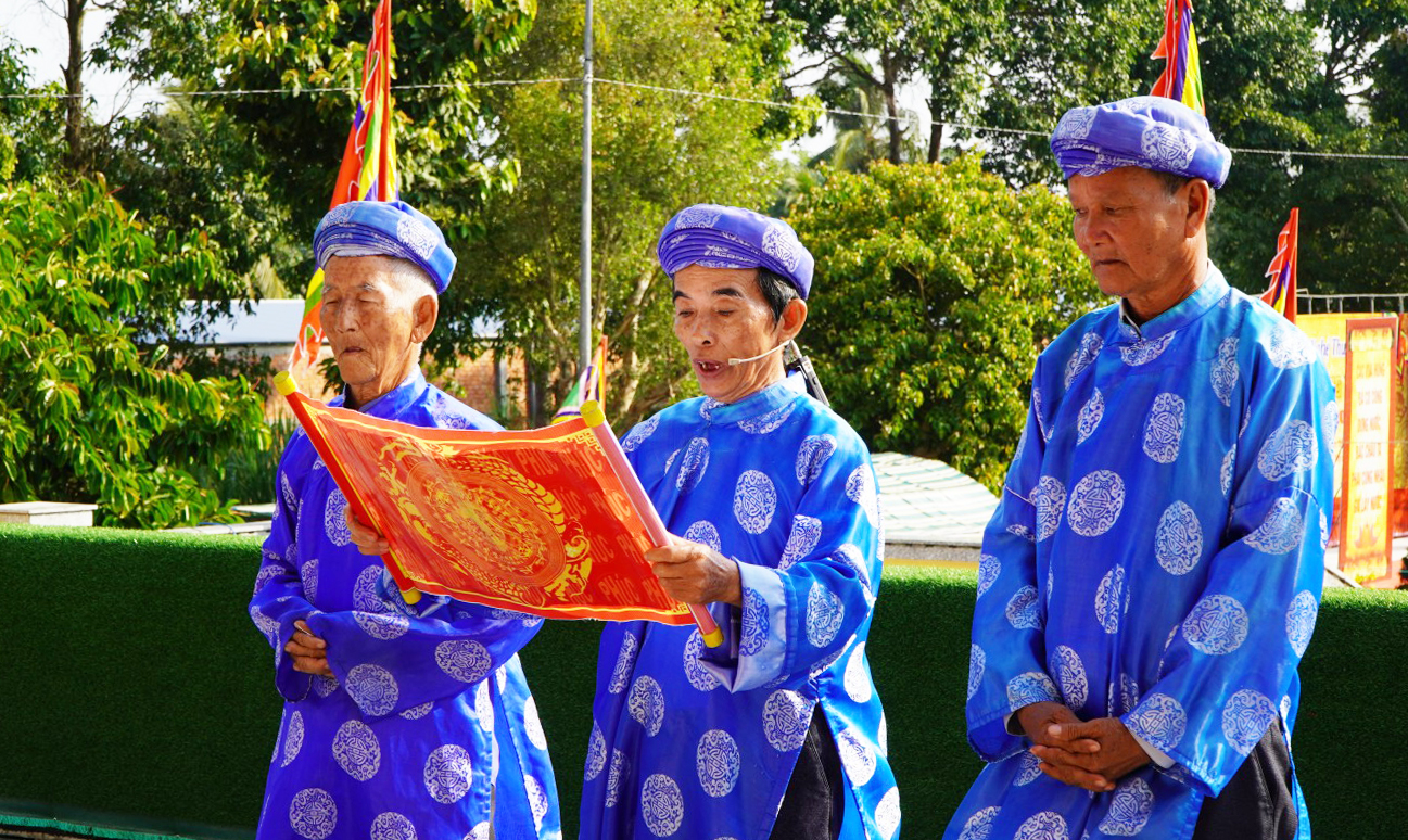 Chánh tế của Đền thờ Quốc Tổ Hùng Vương, xã Tân Hiệp đọc chúc văn của lễ giỗ.