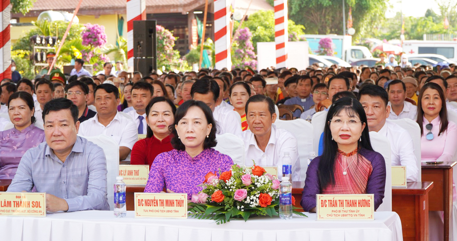 Phó Bí thư Tỉnh ủy, Chủ tịch Ủy ban MTTQ Việt Nam tỉnh An Giang Trần Thị Thanh Hương; Phó Chủ tịch UBND tỉnh An Giang Nguyễn Thị Minh Thúy cùng các đại biểu dự lễ.
