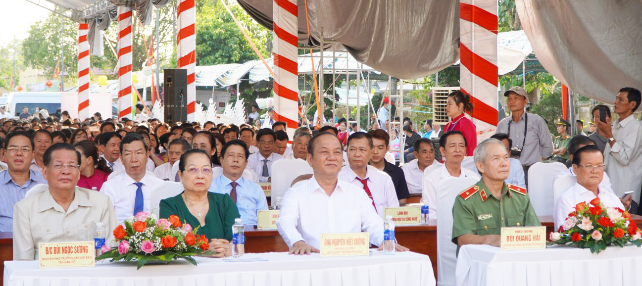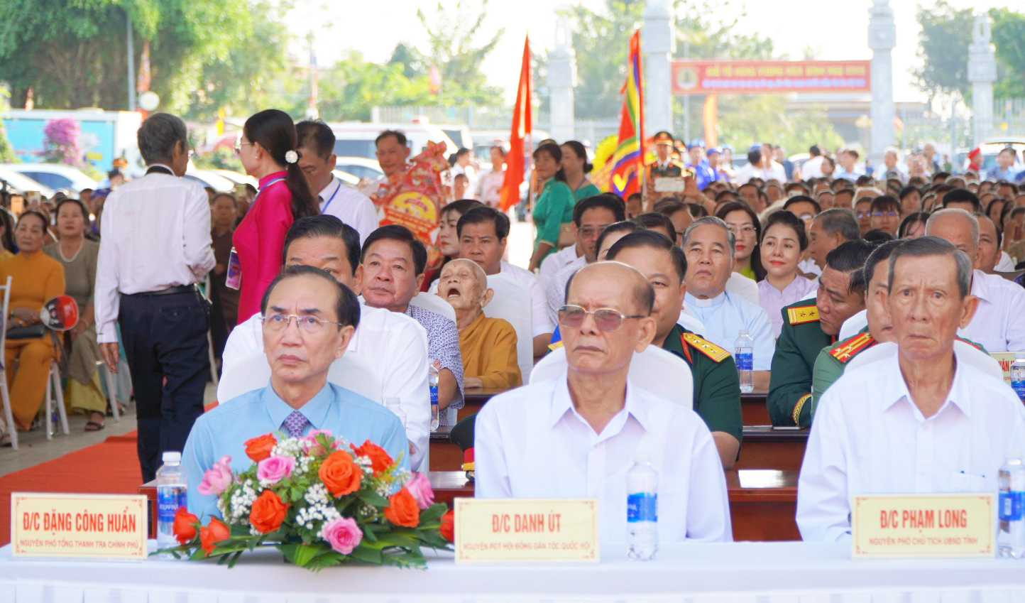 Các đồng chí Danh Út, nguyên Phó Chủ tịch Hội đồng Dân tộc của Quốc hội; Đặng Công Huẩn, nguyên Phó Tổng Thanh Tra Chính phủ, nguyên Bí thư Huyện ủy Tân Hiệp (cũ) cùng các đại biểu dự lễ.