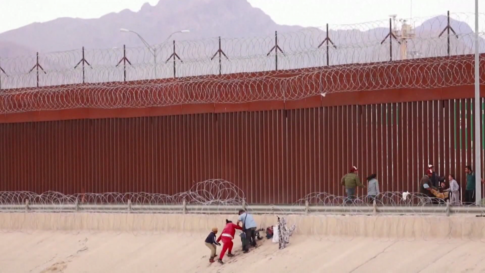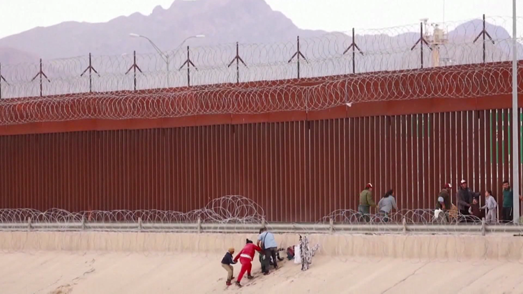 Người nhập cư đang tìm cách vượt qua bức tường bảo vệ tại biên giới Mỹ - Mexico. Ảnh chụp màn hình