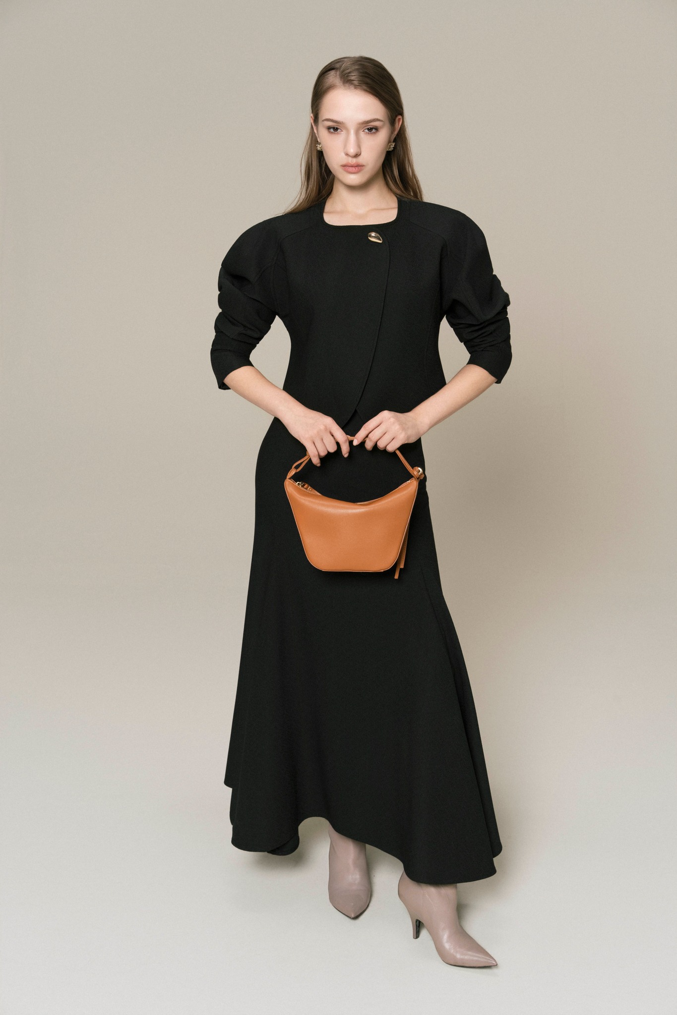 Chất liệu vải dệt kim là lựa chọn hàng đầu cho các thiết kế đầm dáng dài mùa lạnh. Không chỉ mang đến cảm nhận dễ chịu cho cơ thể, loại vải này còn là mảnh đất màu mỡ để các nhà mốt thỏa sức sáng tạo, áp dụng các kỹ thuật cắt may kinh điển để tạo nên những cấu trúc tinh tế tôn dáng xuất sắc. ẢNH: MOCEVA