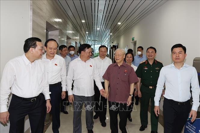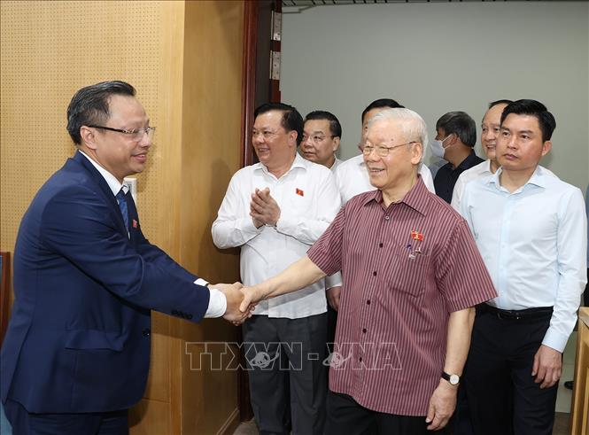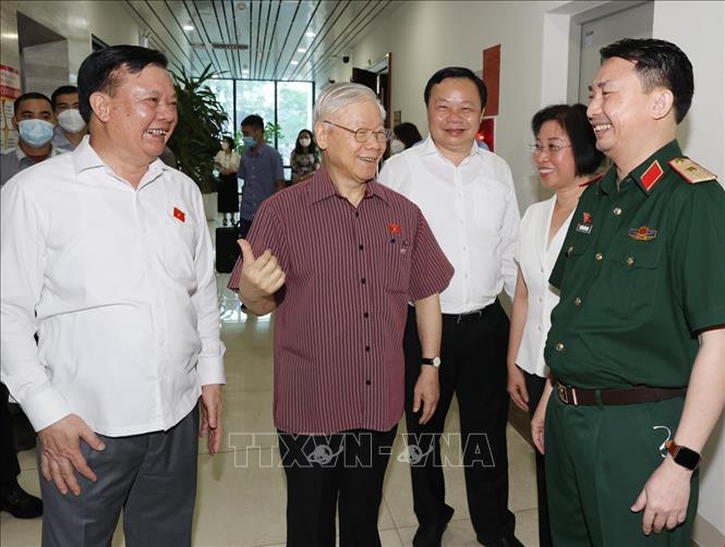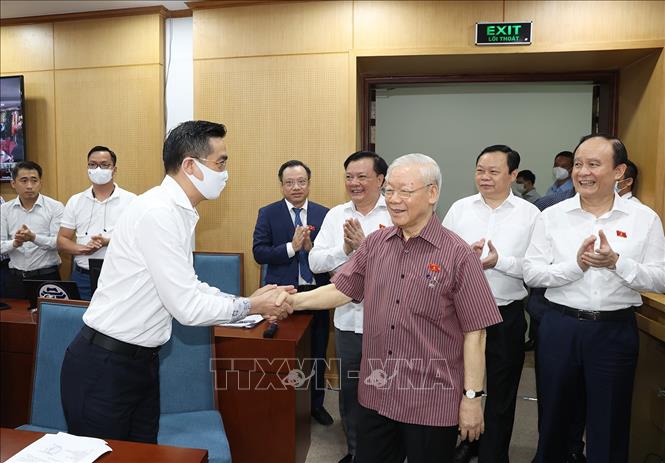 Sáng 12/5/2022, Tổng Bí thư Nguyễn Phú Trọng cùng các đại biểu Quốc hội Đơn vị bầu cử số 1 thuộc Đoàn đại biểu Quốc hội thành phố Hà Nội dự Hội nghị tiếp xúc cử tri quận Đống Đa, Ba Đình, Hai Bà Trưng trước Kỳ họp thứ ba, Quốc hội khoá XV tại trụ sở quận Đống Đa và được kết nối trực tuyến đến 56 điểm cầu.