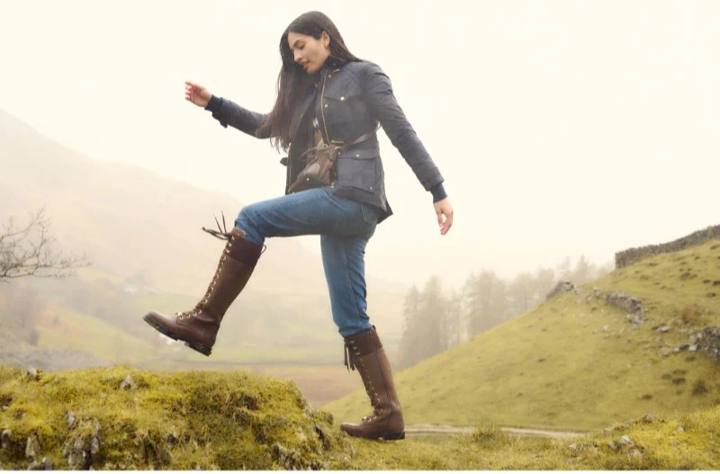 Phong cách dã ngoại thanh lịch với áo khoác dáng ngắn, quần jeans và bốt da chunky có dây buộc, lựa chọn hoàn hảo cho những ngày se lạnh giữa khung cảnh thiên nhiên đầy sương mờ. ẢNH: WILLIAMPOWELL