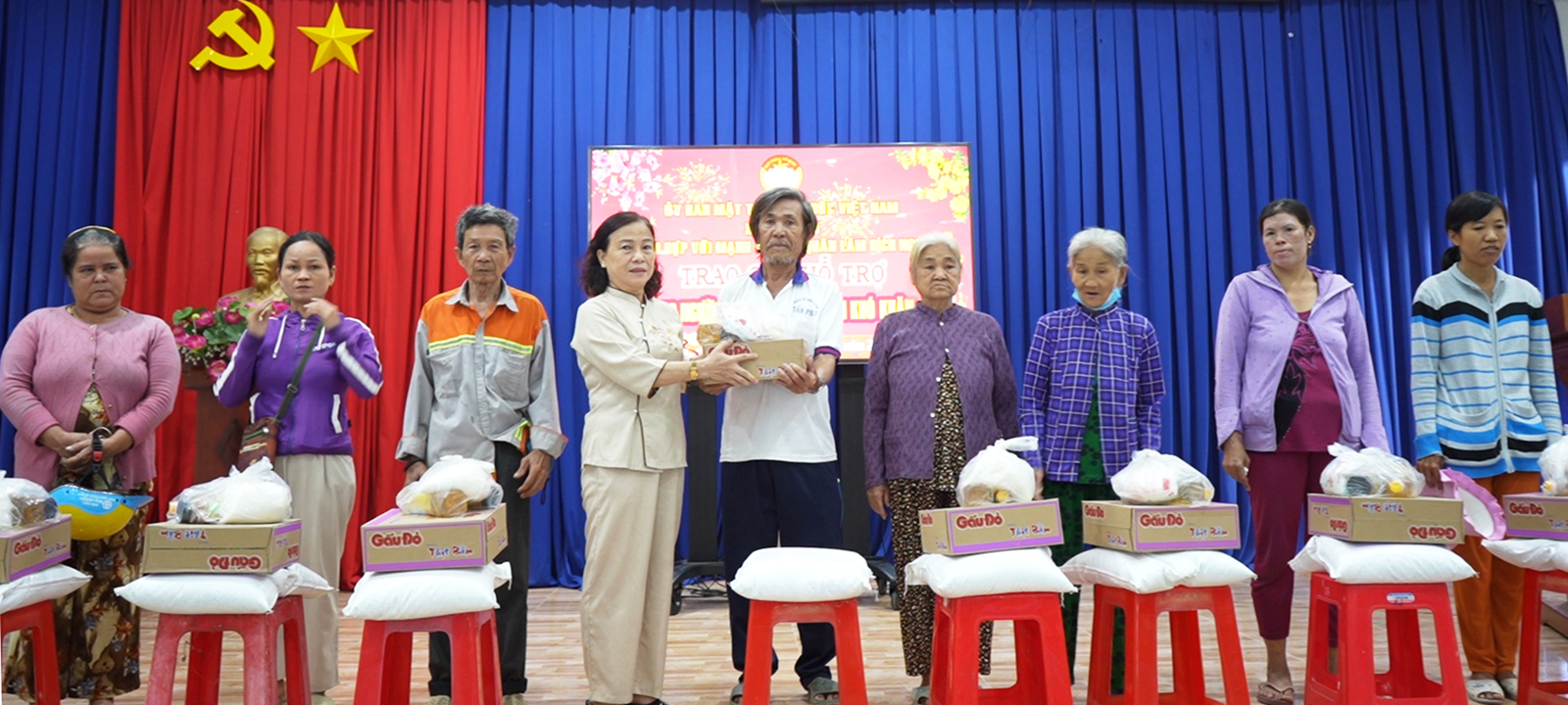 Cụ thể, Ủy ban MTTQ Việt Nam xã Phú Tân trao 1.000 phần quà cho hộ nghèo, cận nghèo và gia đình có hoàn cảnh khó khăn trên địa bàn 3 xã: Phú Tân, Phú Lâm và Hòa Lạc, trong đó, xã Phú Tân 700 phần quà, xã Phú Lâm 150 phần quà và xã Hòa Lạc 150 phần quà). Tổng trị giá quà 500 triệu đồng, do gia đình ông Nguyễn Văn Phùng, ngụ xã Hòn Đất, tài trợ.