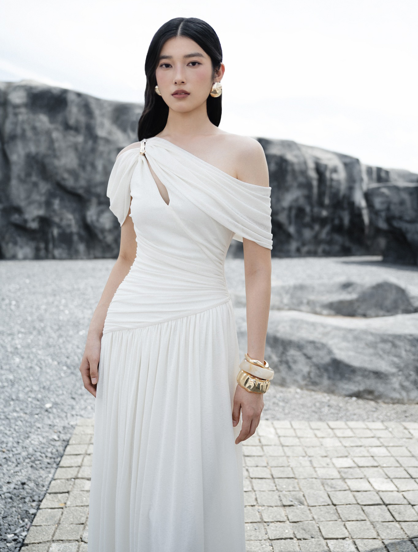 Gam màu trắng tinh khiết, mềm mại và nữ tính được dày công chế tác, đặt để tinh tế nhằm tôn đường cong cùng thần thái sang trọng, quý phái của nàng. ẢNH: MOLLYNISTA