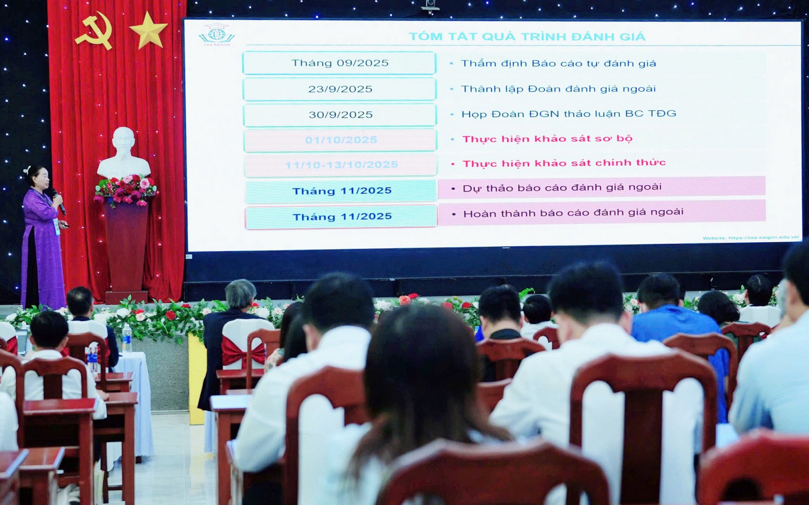 Tiến sĩ Tô Thị Thu Hương, trưởng đoàn đánh giá ngoài trình bày báo cáo kết quả khảo sát chính thức.