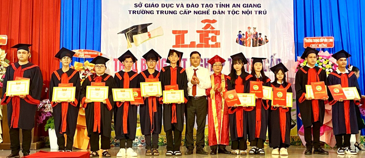 Trao bằng tốt nghiệp cho học sinh hệ trung cấp, năm học 2023 - 2025.