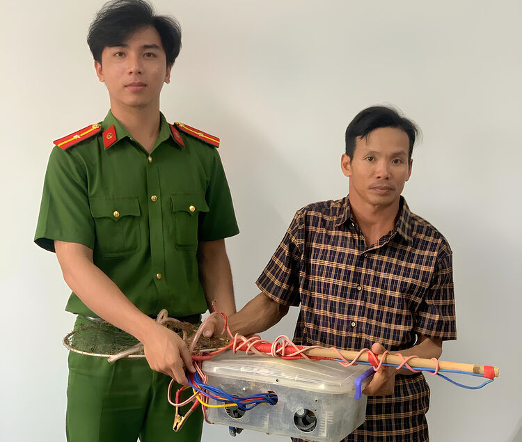 Bên cạnh việc xử lý nghiêm trường hợp vi phạm, công tác vận động người dân tự nguyện giao nộp công cụ kích điện cũng được đẩy mạnh và đạt kết quả tích cực. Cụ thể, ngày 3/4, ông Huỳnh Văn Thông, ngụ ấp Thắng Lợi, xã Vĩnh Thuận tự nguyện giao nộp 1 máy kích điện tử dùng để khai thác thủy sản cùng các dụng cụ liên quan cho lực lượng công an.
