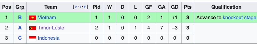 Do U23 Timor Leste đánh bại U22 Singapore nên sẽ không có đội nào ở bảng A về nhì với 4 điểm. Như vậy U22 Việt Nam sẽ loại được một đối thủ ở bảng A nếu phải xét đến thành tích các đội nhì bảng.