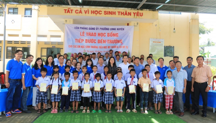 Theo đó, tại xã Mỹ Tú, Văn phòng Đảng ủy phường Long Xuyên đã trao 20 suất học bổng “Tiếp bước đến trường” cho học sinh có hoàn cảnh khó khăn và đồng bào Khmer của Trường Tiểu học Mỹ Thuận B. Mỗi suất trị giá 1 triệu đồng tiền mặt, từ nguồn vận động xã hội hóa.