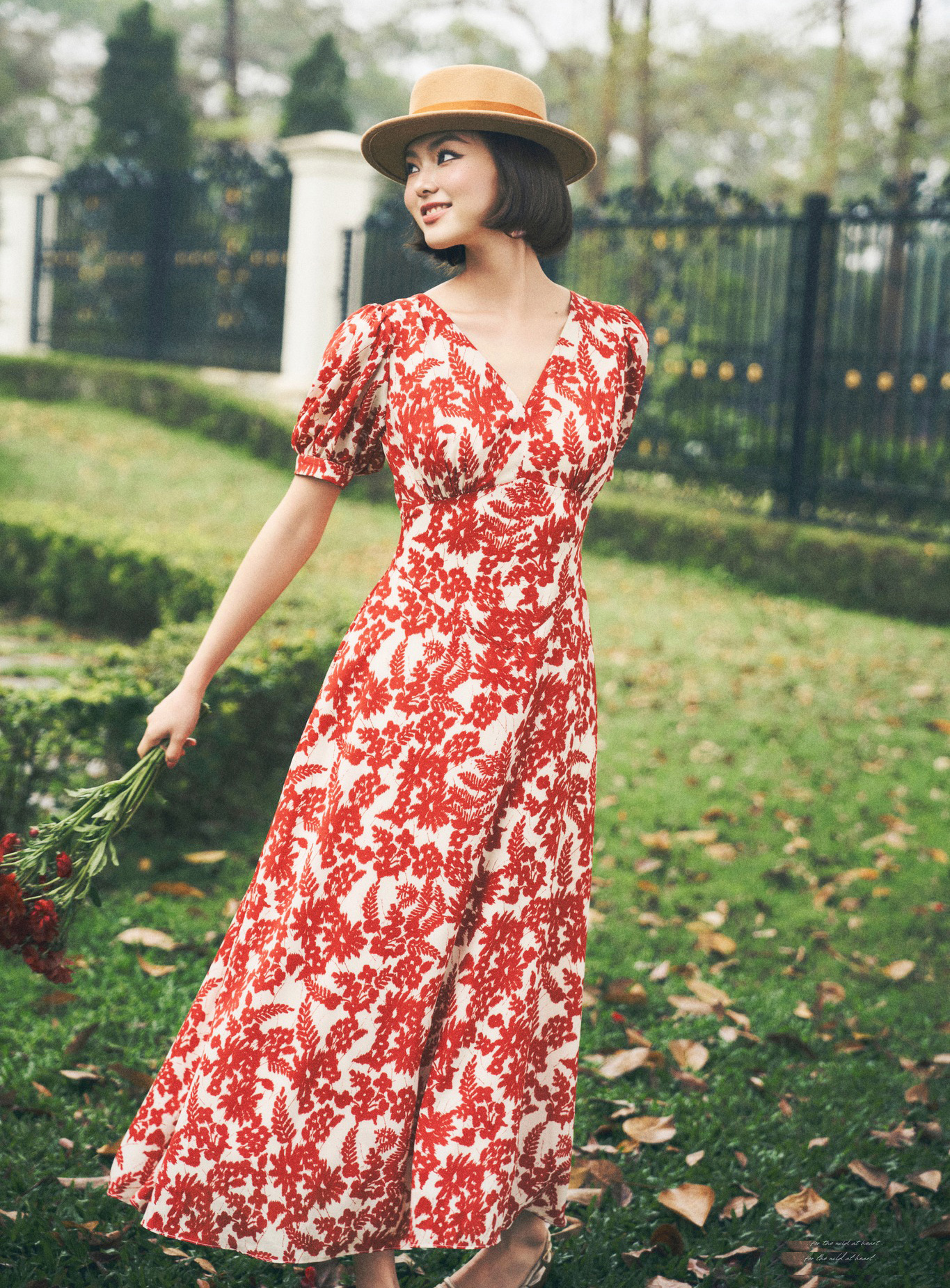 Váy hoa dáng dài tông màu đỏ và trắng giúp nàng nổi bật giữa không gian xanh mát của thiên nhiên. Trong chuyến đi biển hè này, váy hoa đỏ càng trở thành lựa chọn đáng để cân nhắc khi chất vải mềm nhẹ, ít nhăn dễ đóng gói và tiện mặc trong nhiều khoảnh khắc. ẢNH: DREAMERS