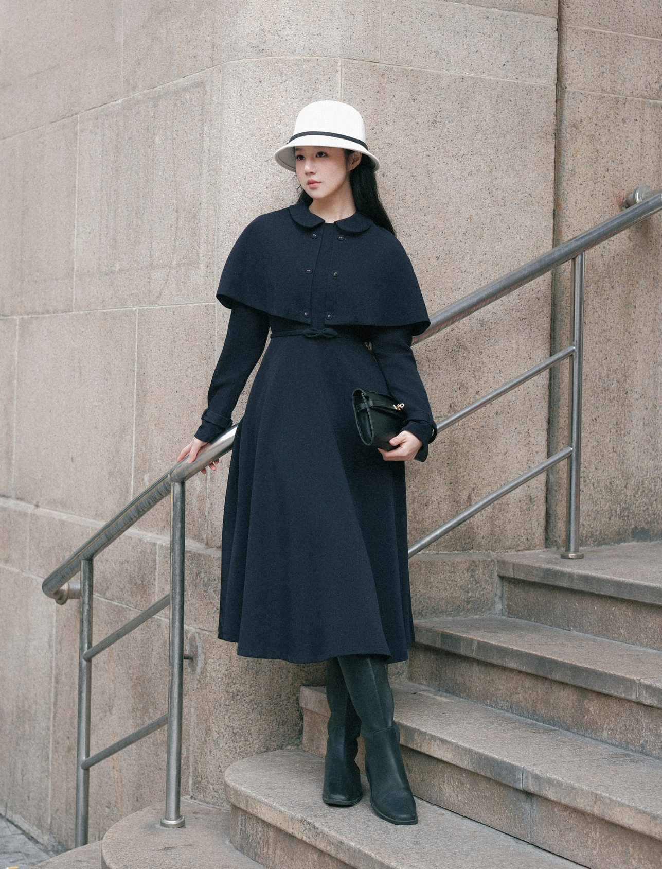 Xuống phố ngày lạnh cùng thiết kế váy dài kèm cape cổ sen, thắt nơ eo - một hình ảnh vừa kiêu kỳ, sang chảnh lại vừa gần gũi và ấm áp khó rời mắt. ẢNH: GERME