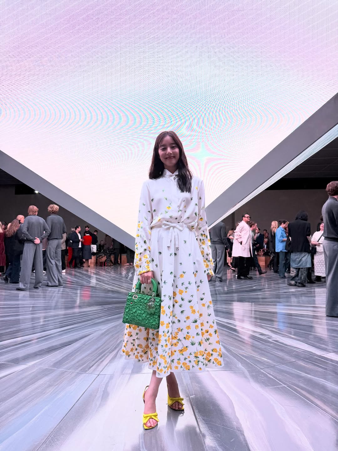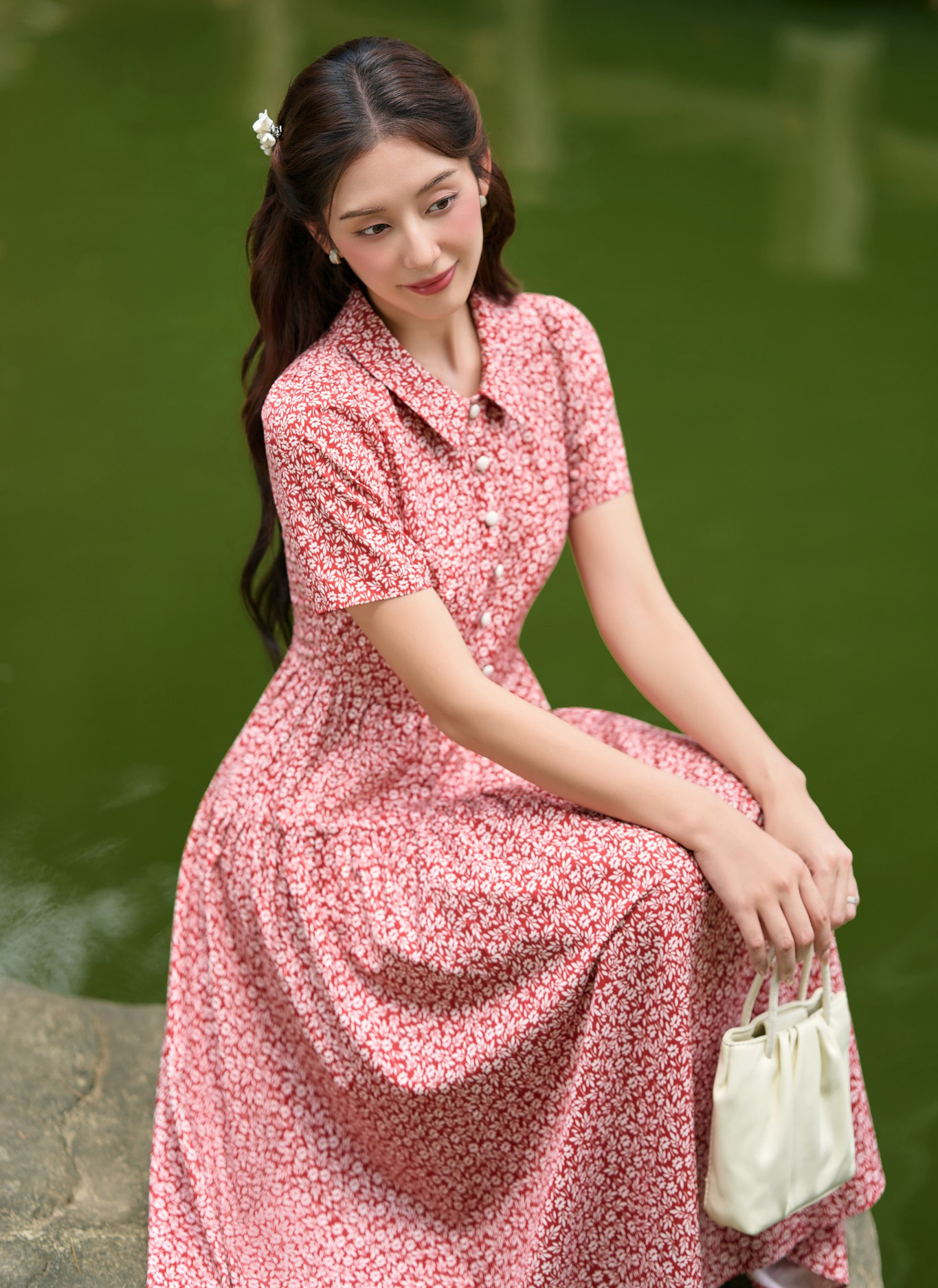 Một thiết kế đầm liền dáng dài gây ấn tượng ngay từ cái nhìn đầu tiên. Chi tiết cổ sơ mi bẻ lịch sự, tay lửng trẻ trung đi cùng bảng màu và họa tiết hoa nhí nhã nhặn, lịch thiệp. ẢNH: OYSTER