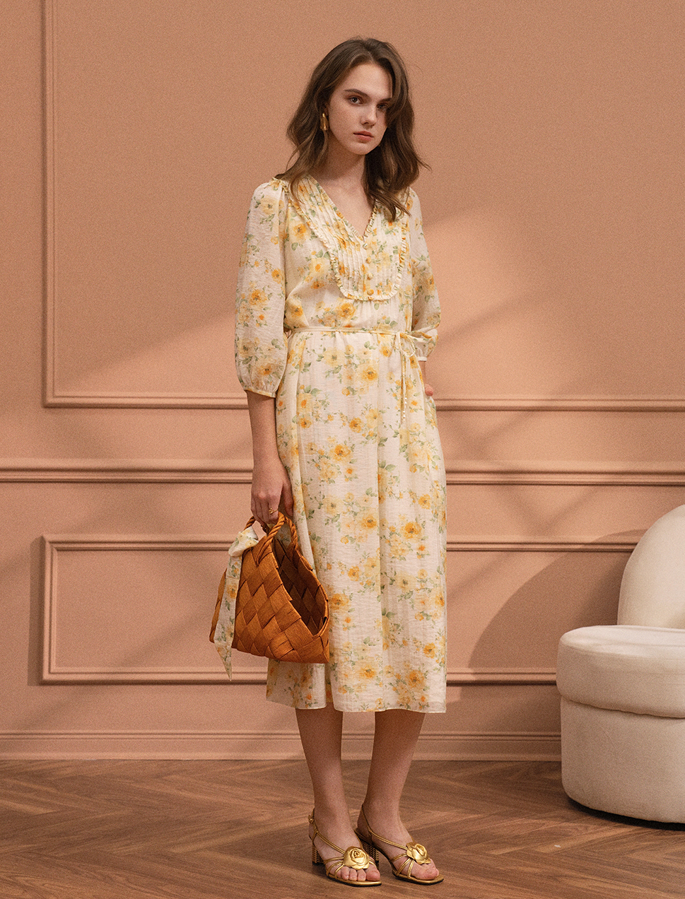 Váy suông họa tiết hoa cỏ phối ren và đường viền nữ tính, những đường gấp nếp xếp ly hay gam màu óng ả... mang đến cho nàng cảm nhận rõ nét về sự chuyển động nhịp nhàng của thời tiết, nhiệt độ và cảm xúc cùng giao hòa.