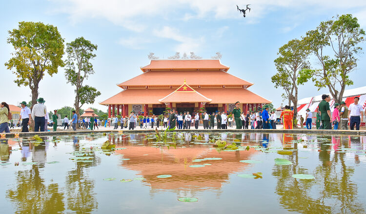 Một góc Khu chứng tích chiến tranh rừng tràm Bang Biện Phú và Đền thờ anh hùng liệt sĩ, người có công, xã Vĩnh Phong. Ảnh: PHẠM HIẾU