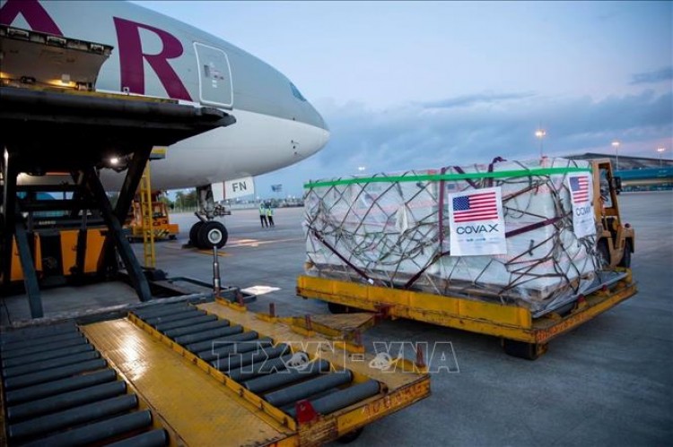 Lô vaccine Moderna phòng COVID-19 do Chính phủ Hoa Kỳ hỗ trợ về đến sân bay quốc tế Nội Bài (Hà Nội), sáng 10/7. Ảnh: UNICEF Việt Nam/TTXVN phát