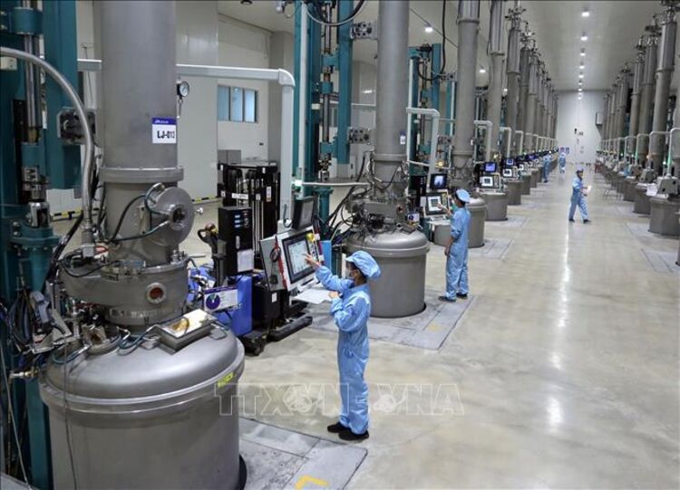 Dây chuyền sản xuất nguyên liệu để chế tạo pin năng lượng mặt trời tại Công ty TNHH JA Solar Việt Nam, vốn đầu tư của Hong Kong (Trung Quốc) tại khu công nghiệp Quang Châu (tỉnh Bắc Ninh). Ảnh tư liệu: Danh Lam/TTXVN