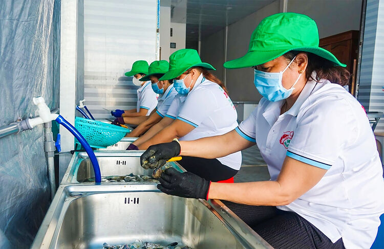 Cơ sở sản xuất, chế biến tôm Minh Thịnh tạo việc làm cho nhiều người lao động nhàn rỗi ở địa phương. Ảnh: THỦY TIÊN