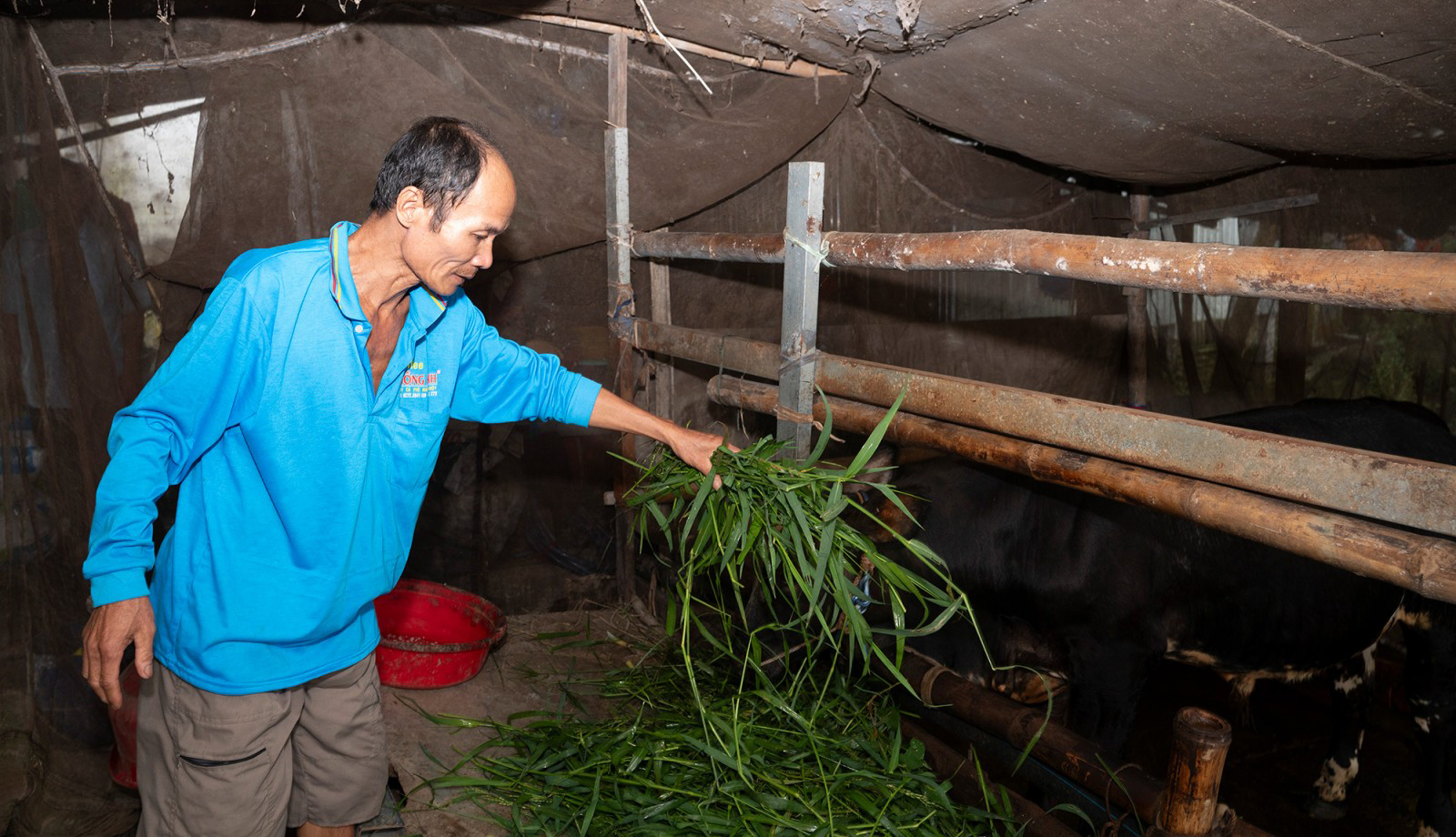 Từ nguồn vốn vay do Ủy ban MTTQ Việt Nam xã giới thiệu, ông Khưu Thành Út, ngụ ấp Trung Bình Nhất đầu tư chuồng trại để nuôi bò vỗ béo. Nhằm tiết kiệm chi phí, sau giờ làm thuê, ông tranh thủ cắt cỏ cho bò ăn. “Tôi rất biết ơn Mặt trận xã đã quan tâm giới thiệu vốn vay lãi suất ưu đãi để những hộ nghèo như chúng tôi có vốn chăn nuôi phát triển sản xuất. Nhờ nuôi bò vỗ béo mà kinh tế gia đình tôi ngày một khá hơn, đời sống cải thiện hơn trước rất nhiều” - ông Út chia sẻ.