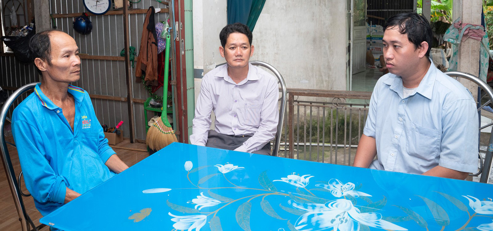 Cán bộ mặt trận xã Vĩnh Trạch thăm hỏi đời sống người dân có hoàn cảnh khó khăn để có giải pháp hỗ trợ, giúp đỡ kịp thời.