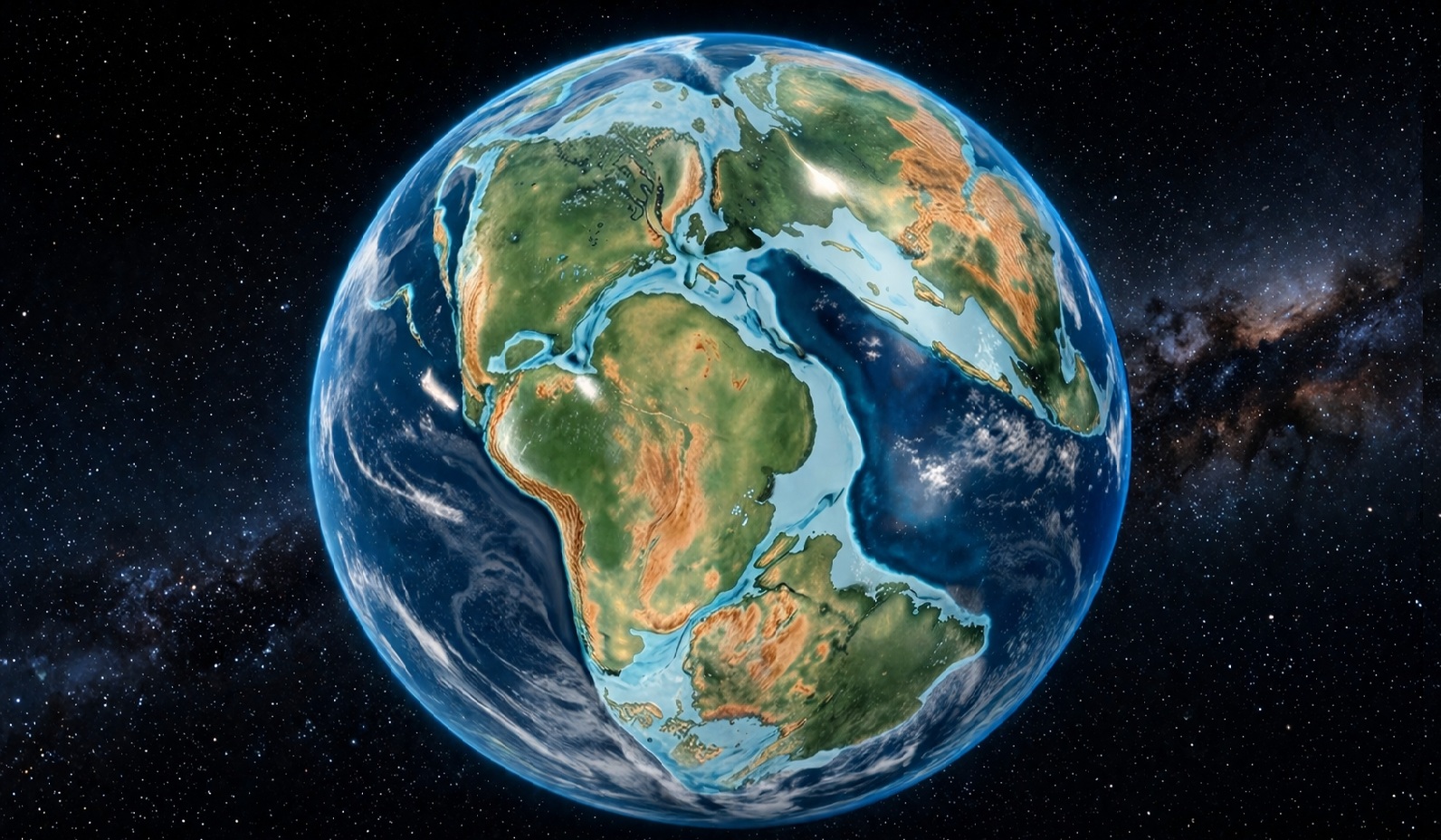 Trái Đất với vẻ ngoài khác biệt trong kỷ Jura, trước khi các quá trình kiến tạo mảng - bao gồm hút chìm - làm diện mạo thay đổi như ngày nay - Minh họa AI: Thu Anh