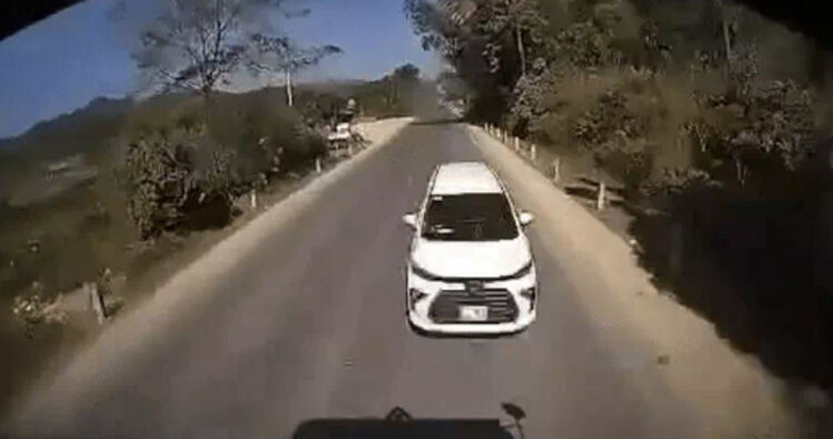 Camera ghi lại lúc xe con tông trực diện vào xe đầu kéo - Ảnh: Công an cung cấp