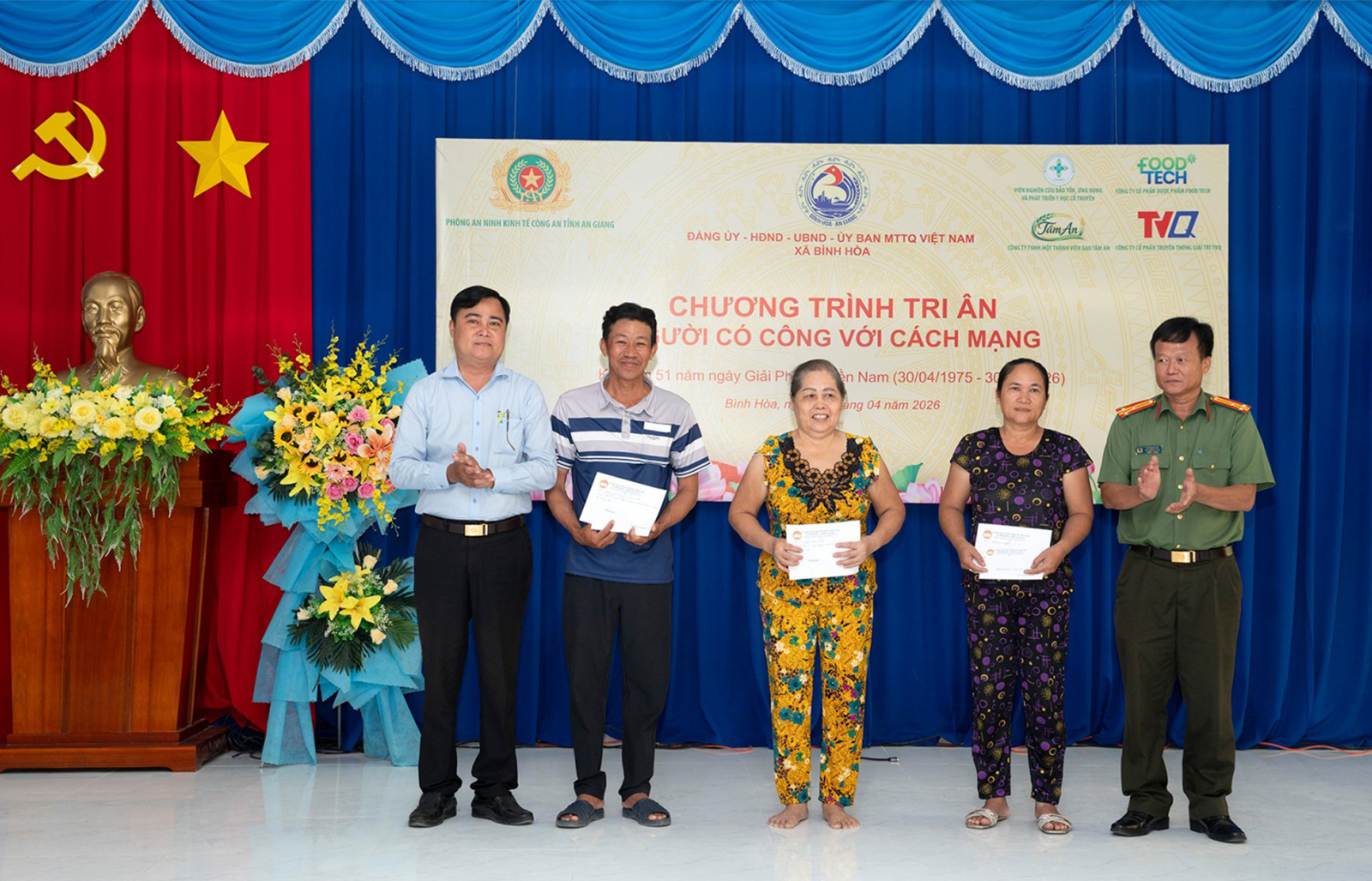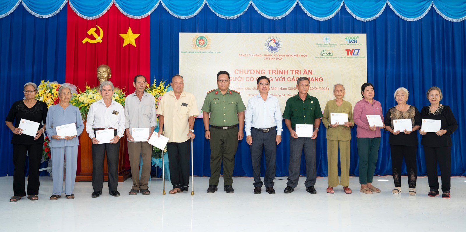 Dịp này, ban tổ chức chương trình tặng quà cho 43 gia đình có công với cách mạng (2 triệu đồng/suất); tặng quà cho 3 gia đình có người khuyết tật, do di chứng từ chất độc hóa học có hoàn cảnh khó khăn trên địa bàn xã Bình Hòa (6 triệu đồng/suất). Tổng trị giá quà 104 triệu đồng do chính quyền địa phương vận động các tổ chức, cá nhân và nhà hảo tâm tài trợ.