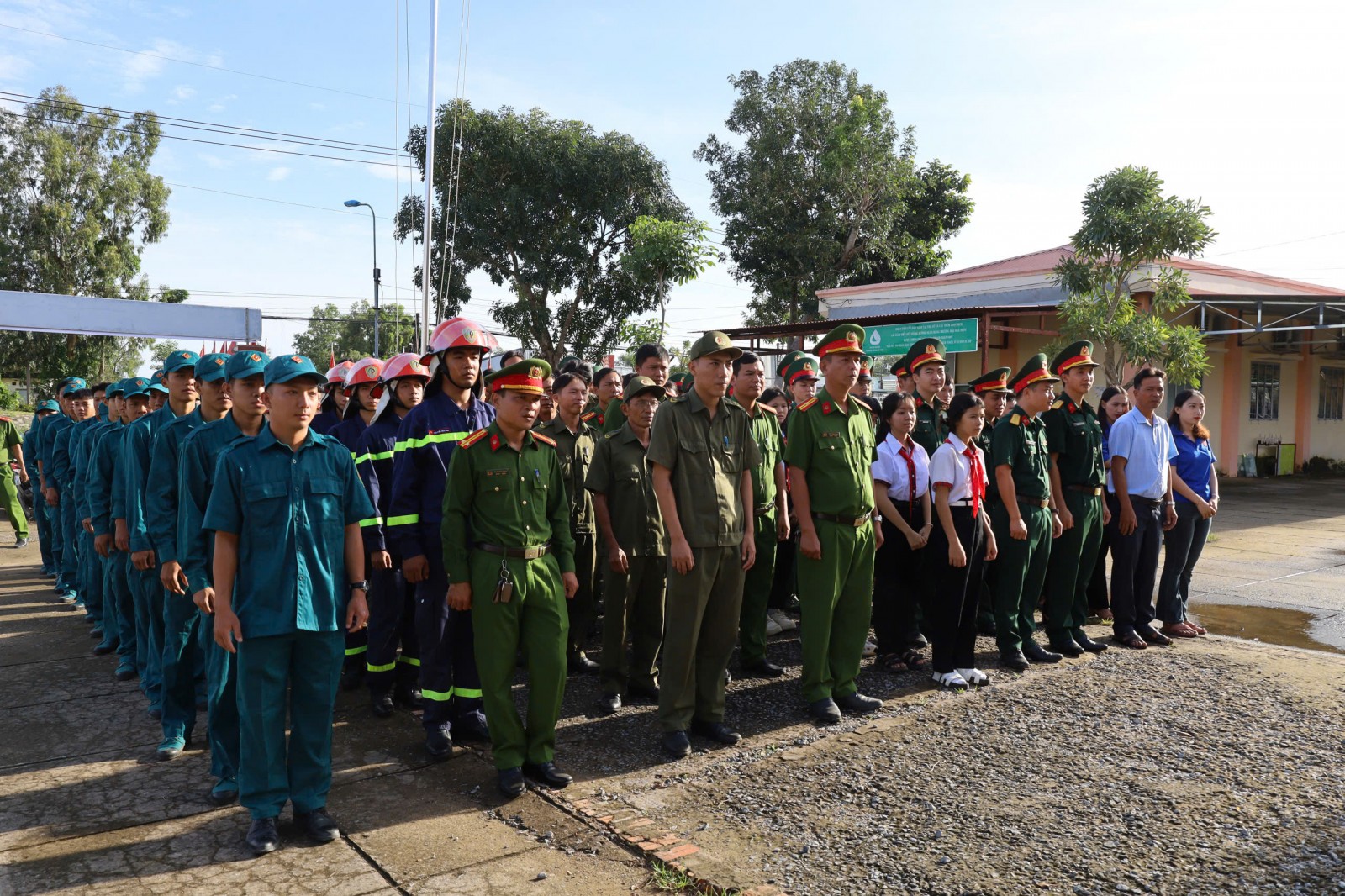 Các lực lượng và người dân xã Hòa Điền tham gia lễ phát động hưởng ứng "Ngày toàn dân phòng cháy và chữa cháy".
