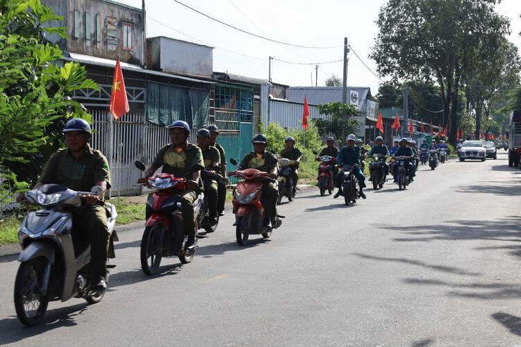 Các lực lượng diễu hành kết hợp tuyên truyền qua các tuyến đường
