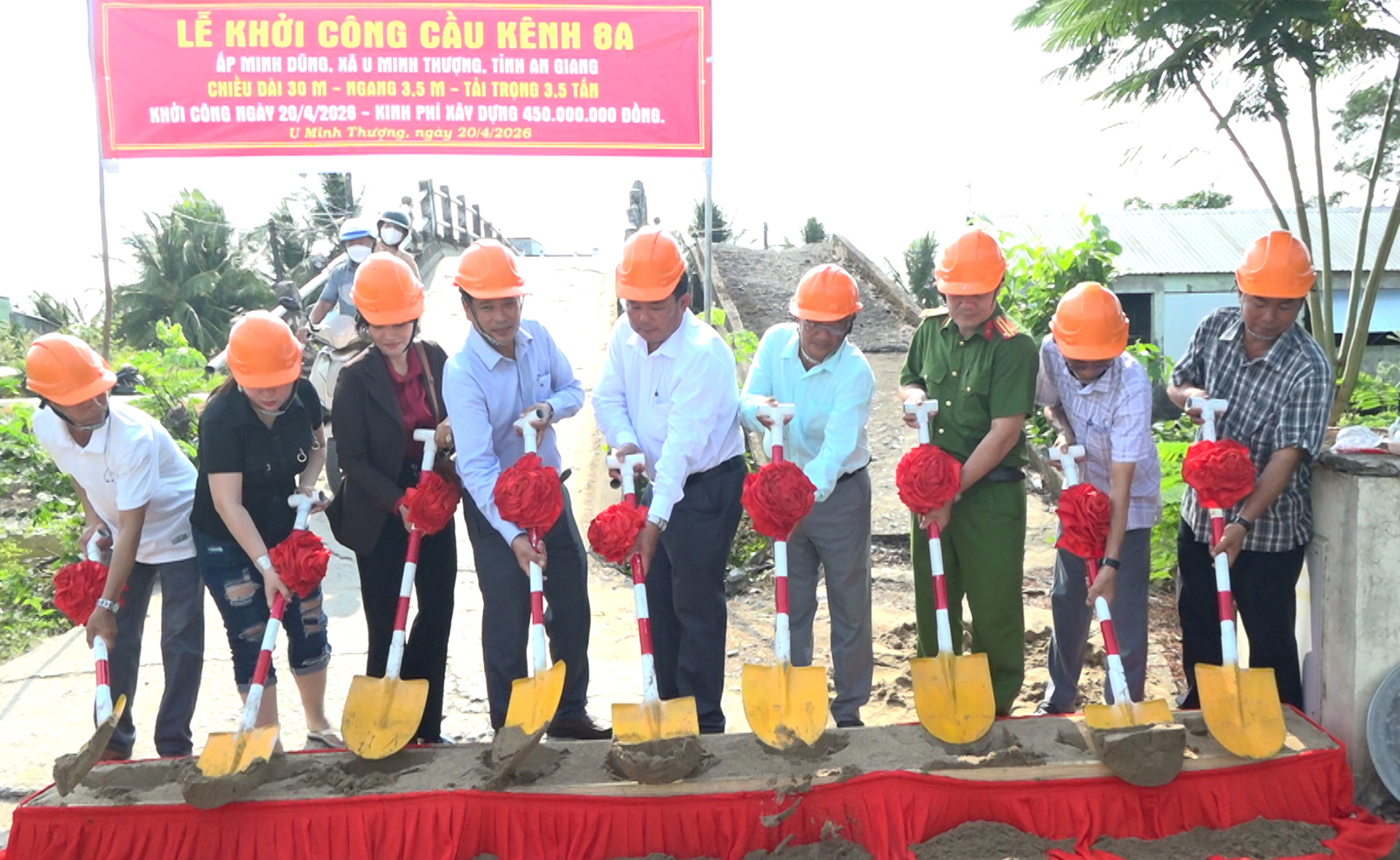 Cầu Kênh 8A được xây dựng với chiều dài 30m, ngang 3,5m, tải trọng 3,5 tấn, tổng kinh phí xây dựng 450 triệu đồng.