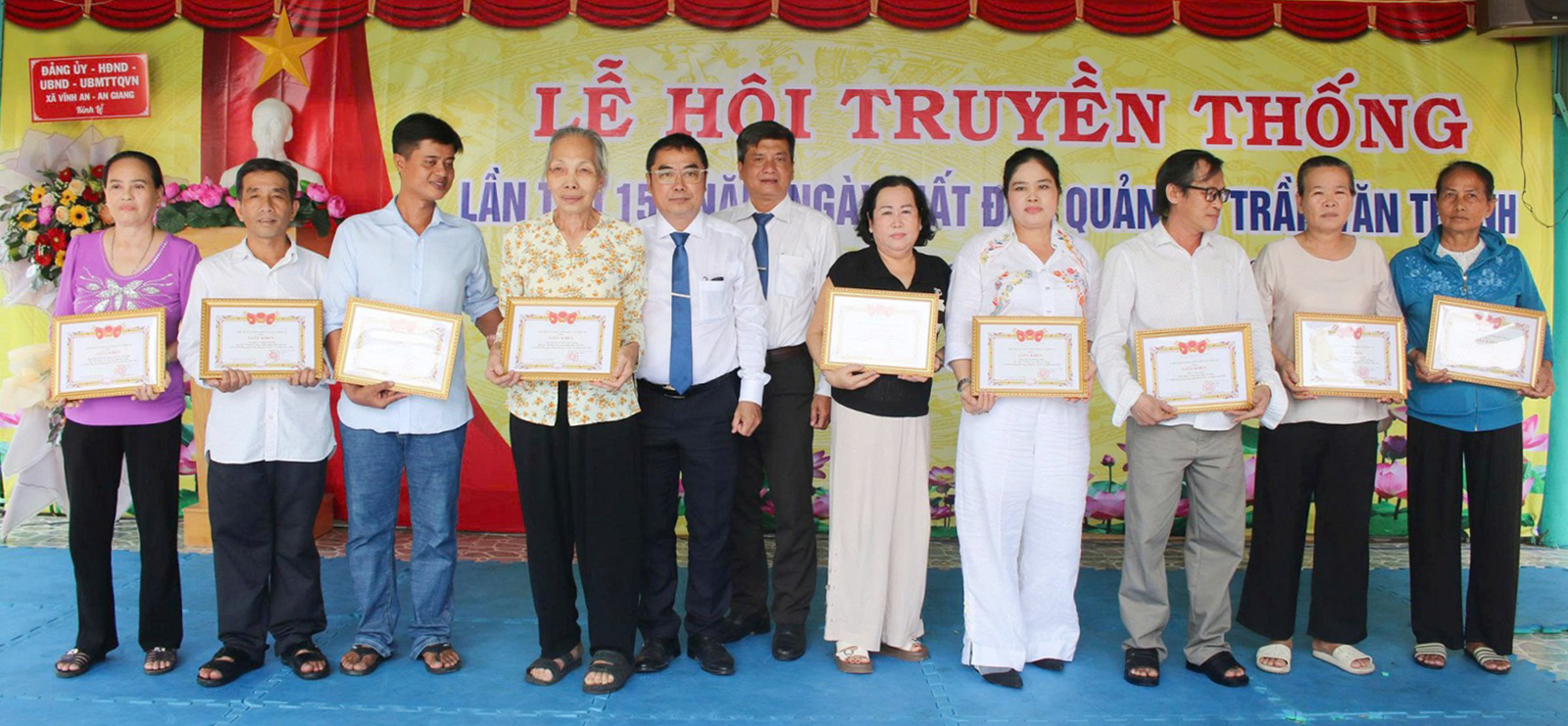 UBND xã Vĩnh An khen thưởng cho các tập thể và cá nhân vì đã có thành tích đóng góp vào sự phát triển của Dinh Sơn Trung.
