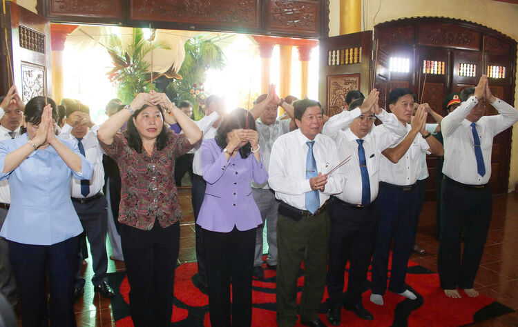 Các đại biểu dâng hương tưởng nhớ công lao Đức Quản cơ Trần Văn Thành.