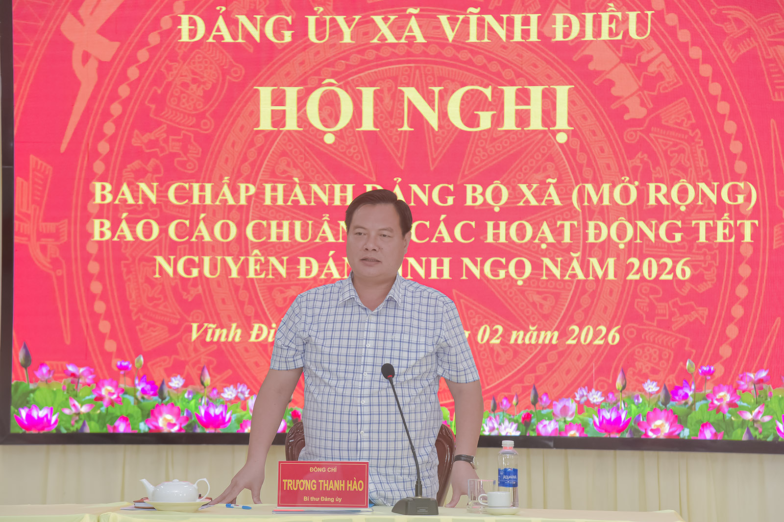 Phát biểu kết luận hội nghị, Bí thư Đảng ủy xã Vĩnh Điều Trương Thanh Hào đề nghị các ban, ngành, đoàn thể, các ấp tăng cường tuyên truyền về thành công của Đại hội đại biểu toàn quốc lần thứ XIV của Đảng; tuyên truyền về cuộc bầu cử đại biểu Quốc hội, HĐND các cấp, nhiệm kỳ 2026 - 2031.
