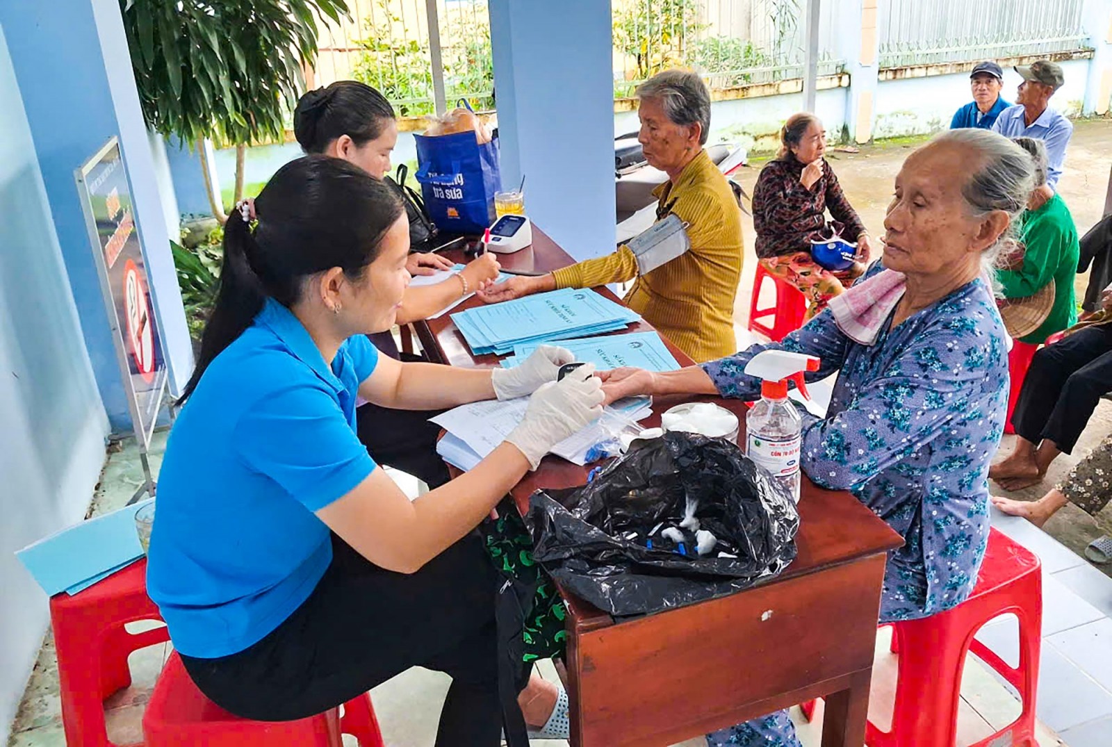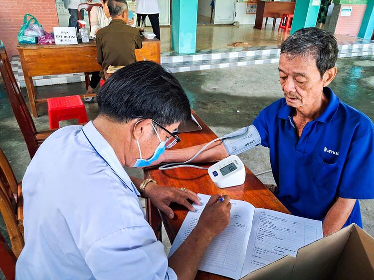 350 người cao tuổi được các y, bác sĩ đo huyết áp, đo đường huyết, khám hô hấp, cơ xương khớp, thị lực, tầm soát các bệnh mãn tính thường gặp ở người cao tuổi; tư vấn chế độ dinh dưỡng, chế độ vận động phù hợp với từng nhóm tuổi và tình trạng sức khỏe.