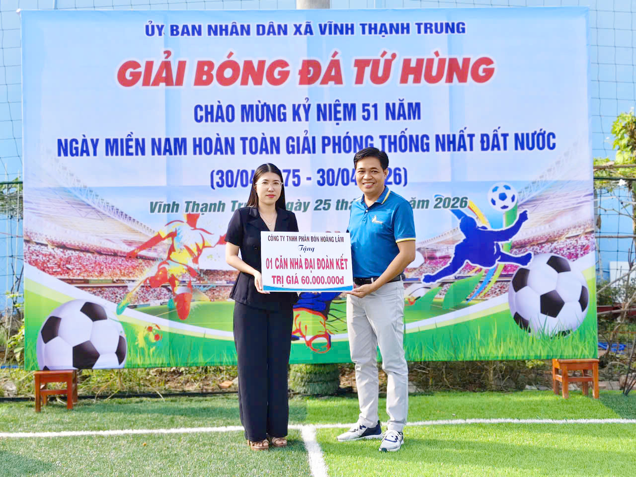 Dịp này, Công ty Cổ phần Phân bón Hoàng Lâm tặng 1 căn nhà đại đoàn kết trị giá 60 triệu đồng cho Ủy ban MTTQ Việt Nam xã để hỗ trợ người dân có hoàn cảnh khó khăn về nhà ở tại địa phương.